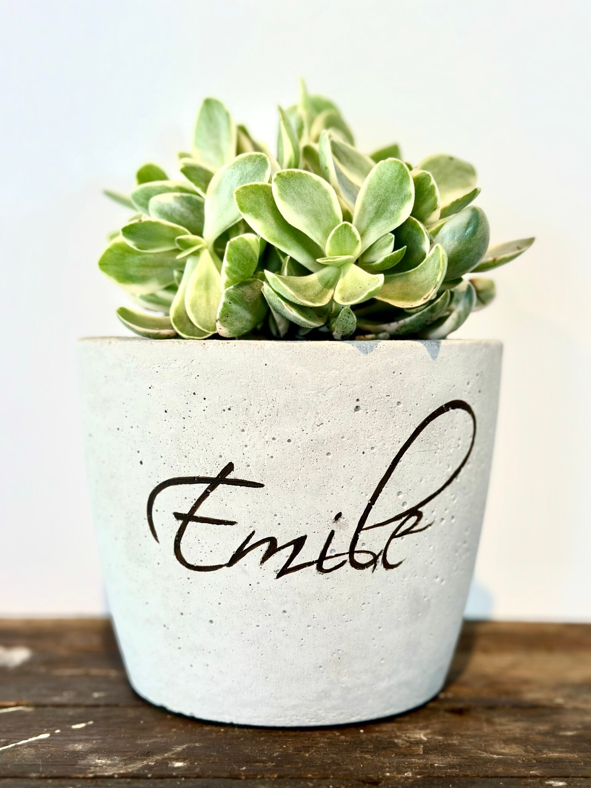 Bloempot met handgeschilderde naam.